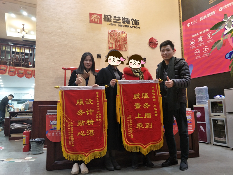 2018年12月15日,兩位溫莎北郡業(yè)主送來(lái)錦旗兩幅,稱贊設(shè)計(jì)師羅靖華,李偉杰,監(jiān)理聶青服務(wù)貼心 設(shè)計(jì)精湛 質(zhì)量上乘 服務(wù)周到。