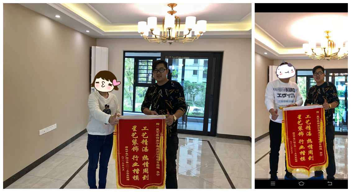 2019年3月30日送來錦旗一副,星藝裝飾項目經(jīng)理李寧與綠地中央廣場業(yè)主合影,錦旗內(nèi)容星藝裝飾 行業(yè)楷模 工藝精湛 熱情周到