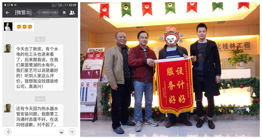 雖然幾個月的裝修過程中有些碰撞,但是溝通是解決問題的唯一途徑,什么事情都能大事化小,小事化了,為了能讓業(yè)主住得舒心,實現(xiàn)當(dāng)初我們許下的諾言,同時也感謝業(yè)主對我公司的信任與理解!