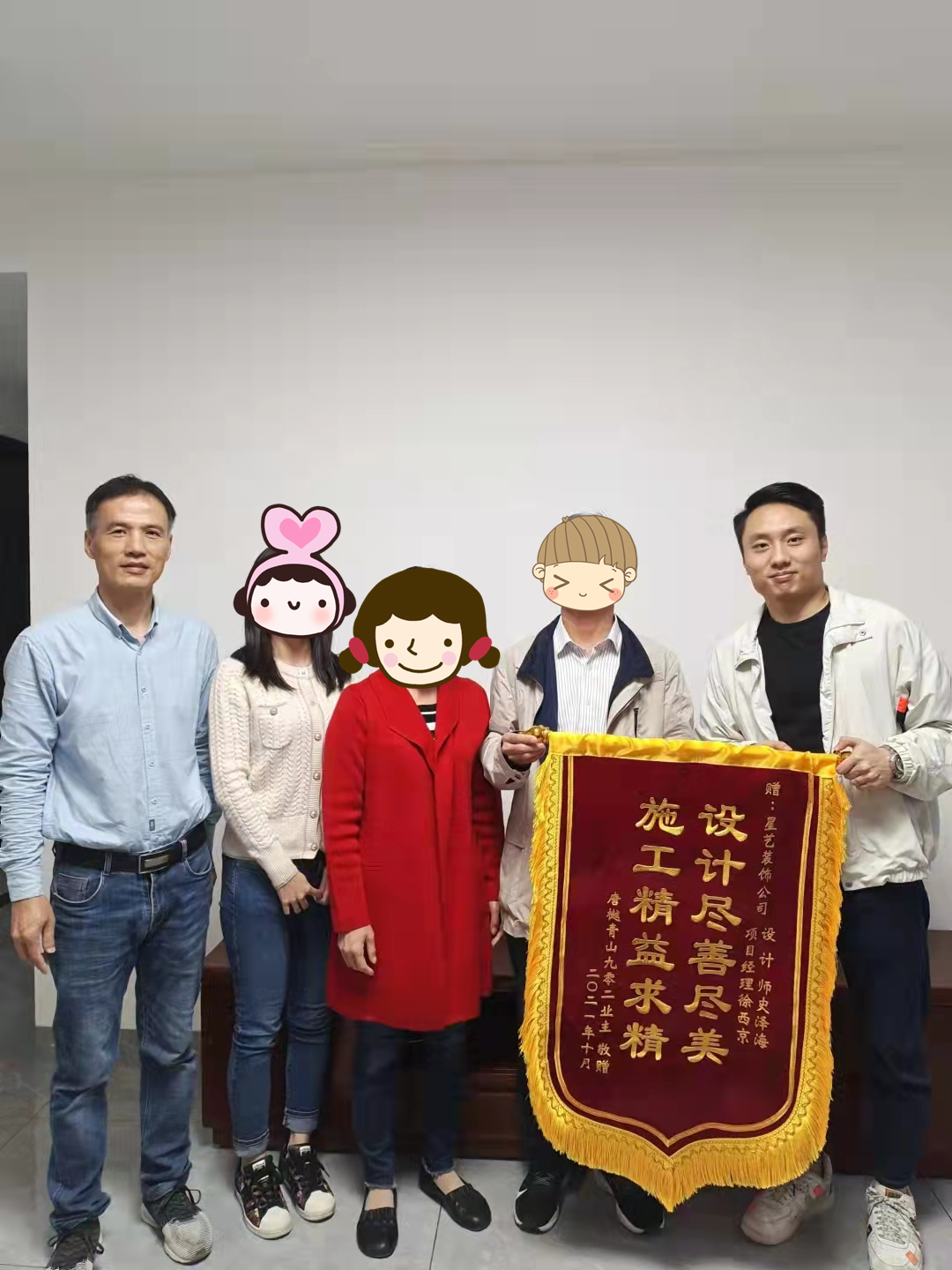 來(lái)自唐樾青山業(yè)主將一面印有“施工精益求精 設(shè)計(jì)盡善盡美”的大紅錦旗送到星藝裝飾,以感謝星藝裝飾的裝修質(zhì)量和服務(wù),項(xiàng)目經(jīng)理徐西京,設(shè)計(jì)師史澤海接收錦旗并和業(yè)主合影