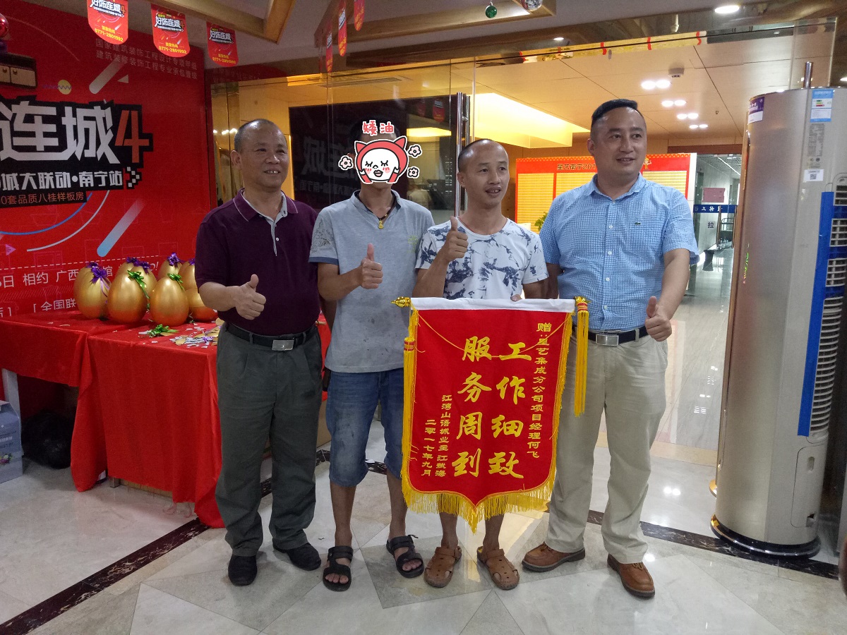 正值好飾連城4活動期間,江灣山語城業(yè)主送來錦旗一面,贊譽(yù)工程部項(xiàng)目經(jīng)理何工何飛工作細(xì)致,服務(wù)周到。