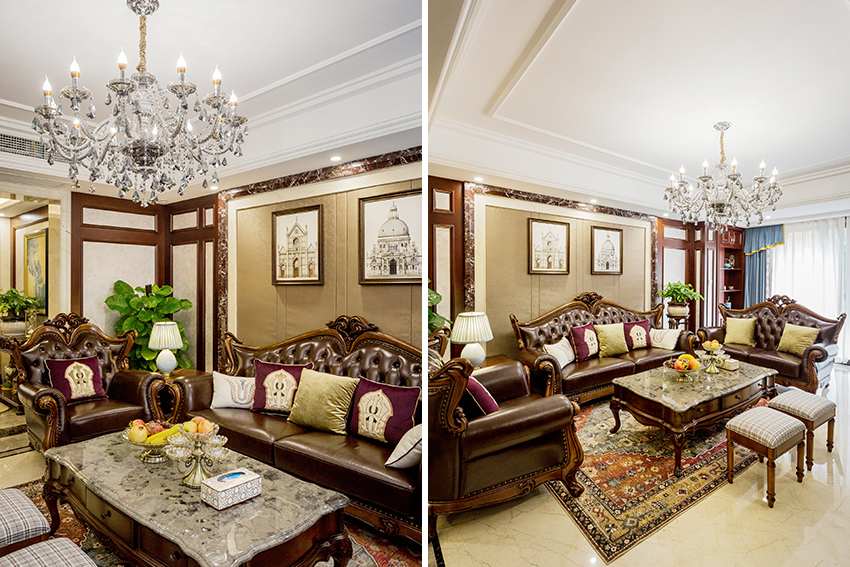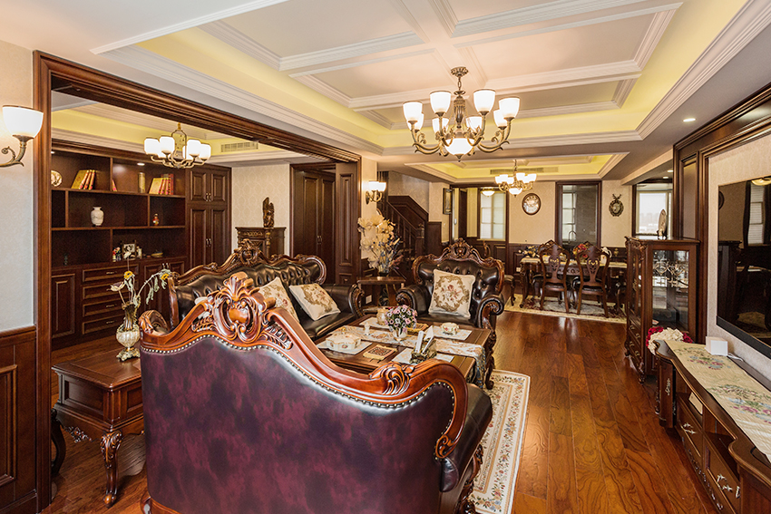 其實(shí),選擇同樣的材質(zhì)、統(tǒng)一的色彩來裝飾客廳地面,利用鋪設(shè)不同走向、軟裝、吊頂走向等來區(qū)隔空間,不僅能使客廳整體顯得統(tǒng)一,又可以達(dá)到分隔功能區(qū)的目的。