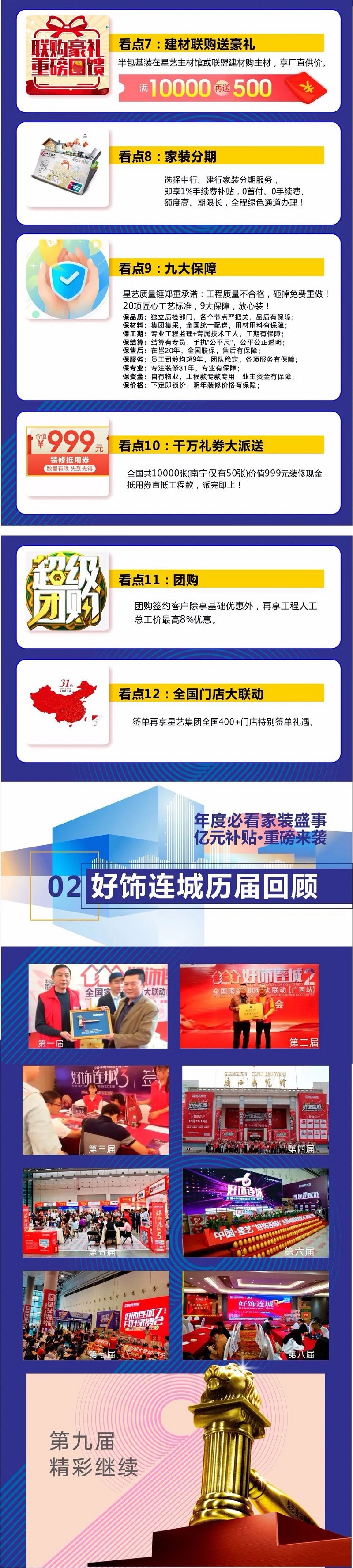 2014年星藝裝飾“好飾連城”全國(guó)大聯(lián)動(dòng)首屆成功舉辦,一年一屆好飾不斷上演,讓星藝旋風(fēng)吹遍全國(guó)各地。值此“好飾連城9”再次席卷全國(guó),一線建材品牌廠價(jià)助陣,星藝總部+歐派總部聯(lián)合讓利,共同打造一場(chǎng)品質(zhì)家裝盛惠,南寧站具體優(yōu)惠如下:
