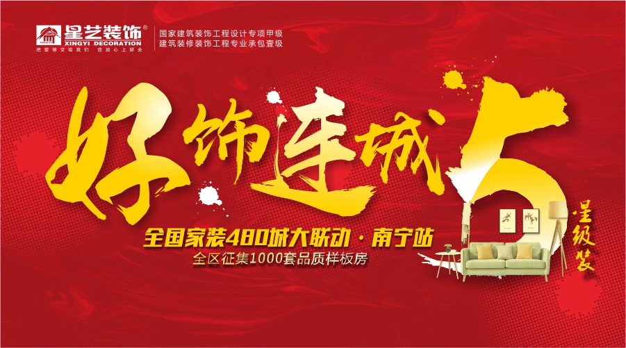 2014年星藝裝飾“好飾連城”全國480城大聯(lián)動(dòng)首屆的成功舉辦,不間斷延續(xù)至今,一年一屆的好飾上演,讓星藝紅色旋風(fēng)吹遍八桂大地。金九銀十的豐收季節(jié),“好飾連城5”再次席卷全國,多家銀行家裝分期助力,幾十家聯(lián)盟一線建材品牌廠價(jià)助陣,集團(tuán)斥資讓利,共同打造一場品質(zhì)家裝盛宴。