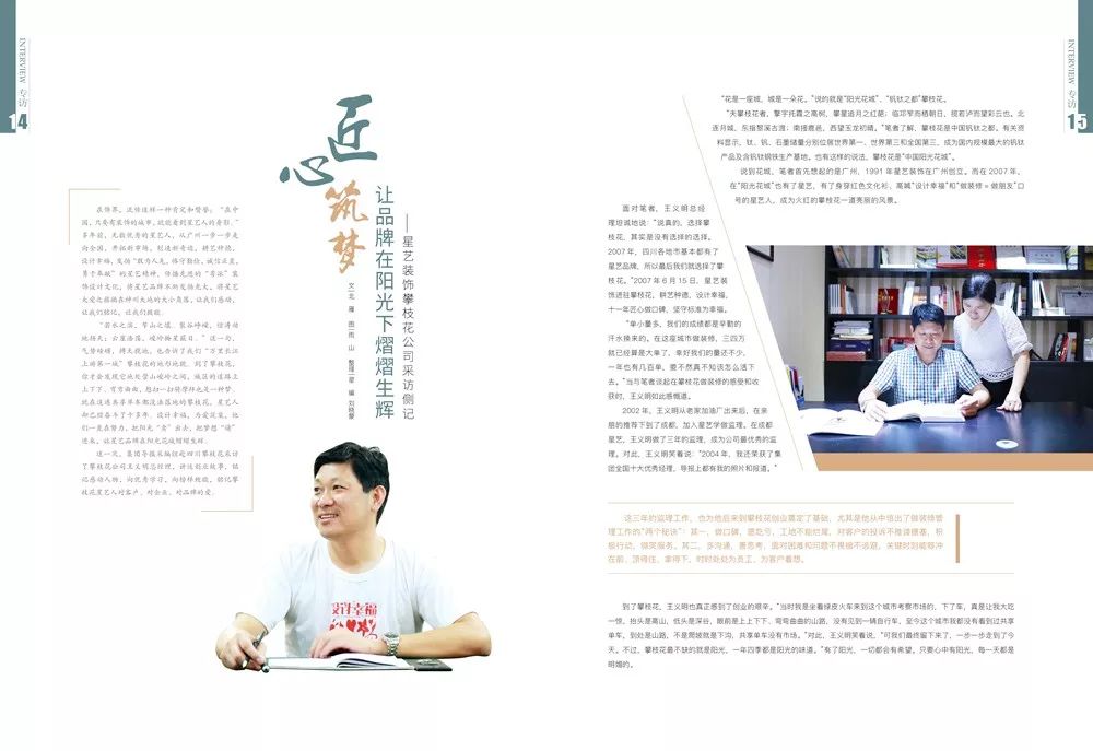 這一次,我們赴四川攀枝花采訪了星藝裝飾攀枝花公司王義明總經(jīng)理,講述創(chuàng)業(yè)故事,銘記感動人物,向優(yōu)秀學習,向榜樣致敬,銘記攀枝花星藝人對客戶、對企業(yè)、對品牌的愛。