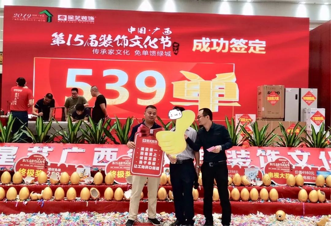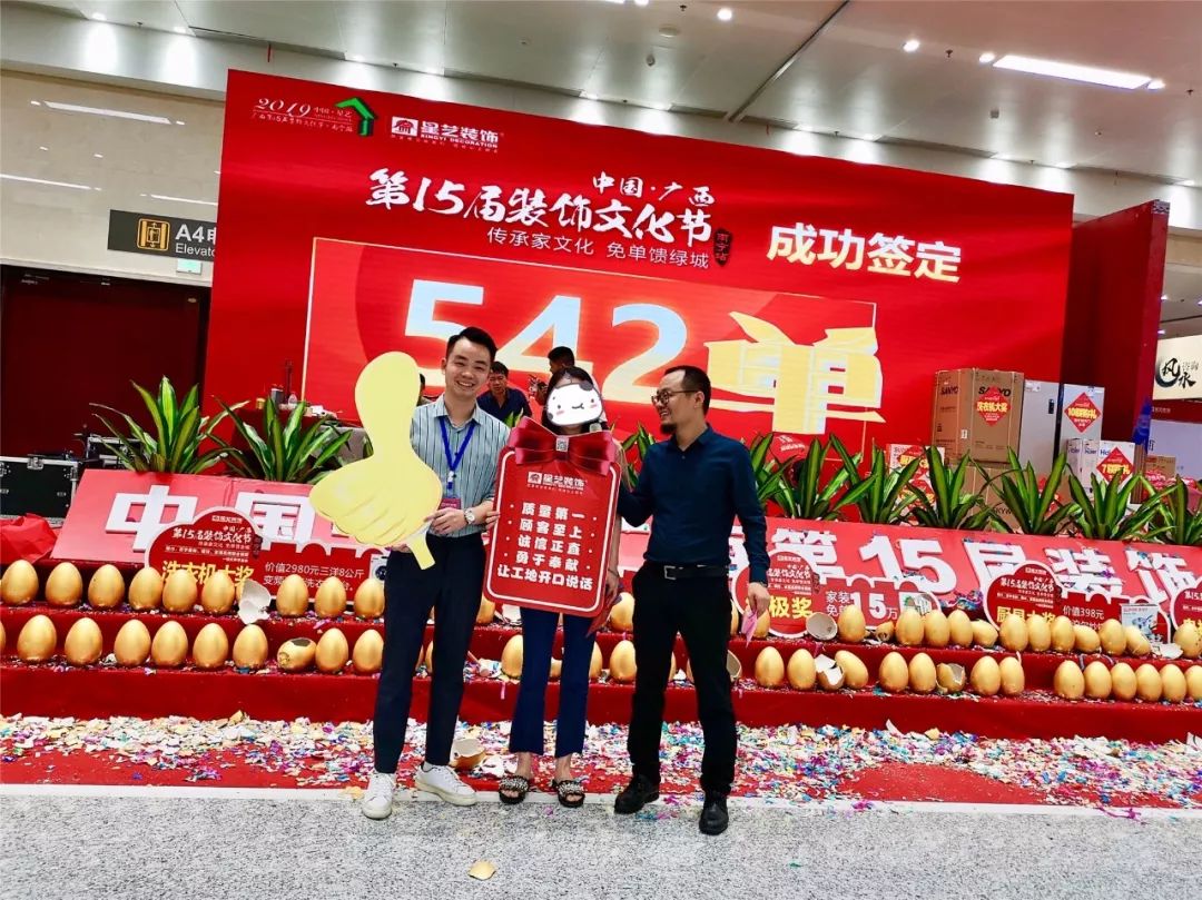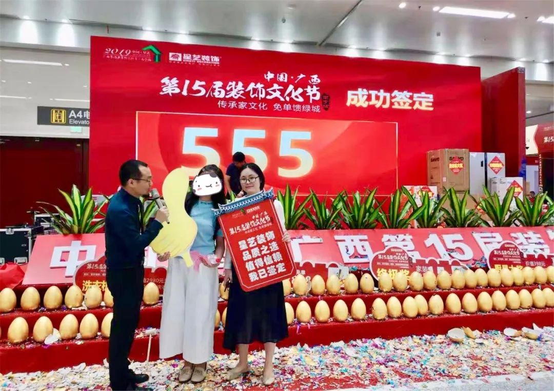 6月16日,隨著“15萬免單大獎(jiǎng)”的塵埃落定,星藝裝飾第十五屆裝飾文化節(jié)(南寧站)于會(huì)展中心圓滿落下帷幕,在廣大客戶朋友、中行、農(nóng)行、建行以及五十余家材料商家的鼎力支持下,星藝南寧在本次活動(dòng)中成功獲得625位客戶的選擇,再次刷新了2018年第十四屆裝飾文化節(jié)的記錄,成績(jī)斐然,收獲滿滿,又創(chuàng)下喜人的奇跡。