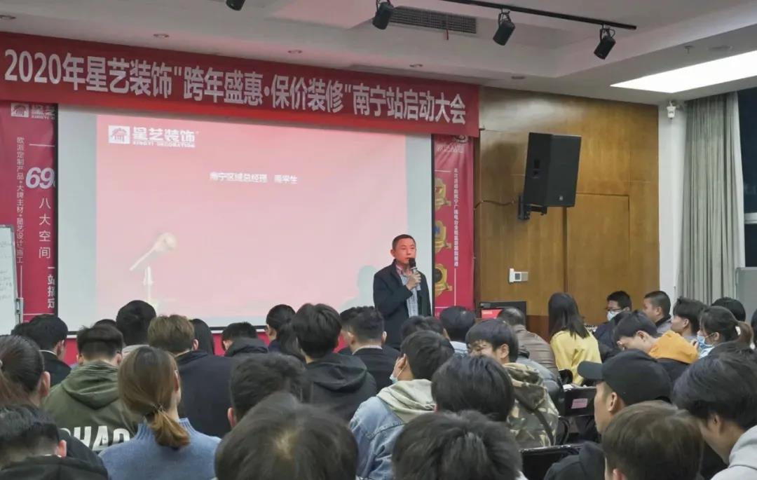 12月08日晚,星藝裝飾“跨年盛惠·保價裝修”(南寧站)活動啟動大會在星藝廣西總部會議室舉行,承諾在此次活動中一定以最好的設計服務和施工質(zhì)量,讓消費者享受到不一樣的家裝體驗,給2020年交上一份滿意的答卷。