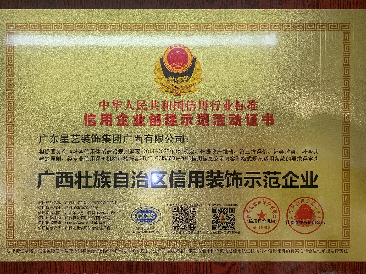 廣西壯族自治區(qū)信用裝飾示范企業(yè)
