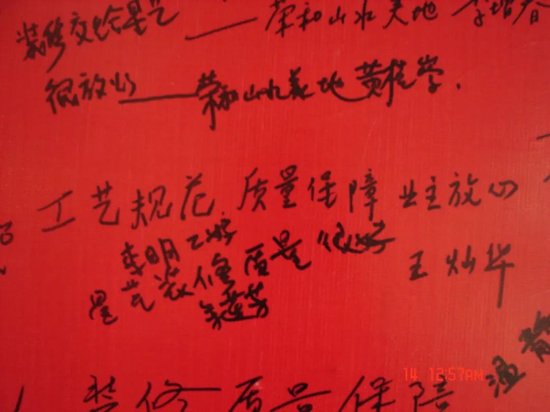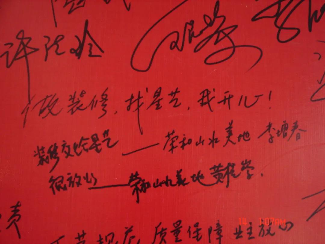 在星藝裝飾南寧公司第三屆“家裝文化節(jié)”上,鮮紅背景的留言板上客戶寫了很多字,有褒揚的,有建議的,有祝愿的……十多年的今天,再一次看到這些留言,越看越感動,越看越暖心……