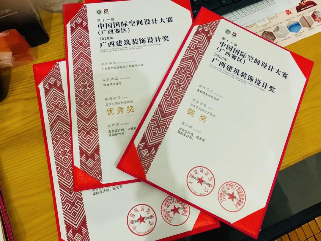 此次大賽,南寧星藝公司12位設(shè)計師獲得第多個獎項,特別是郭劍陽、黃尚/彭麗萍設(shè)計師作品分別獲得第十一屆中國國際空間設(shè)計大賽公共建筑裝飾設(shè)計類的金獎和銅獎。