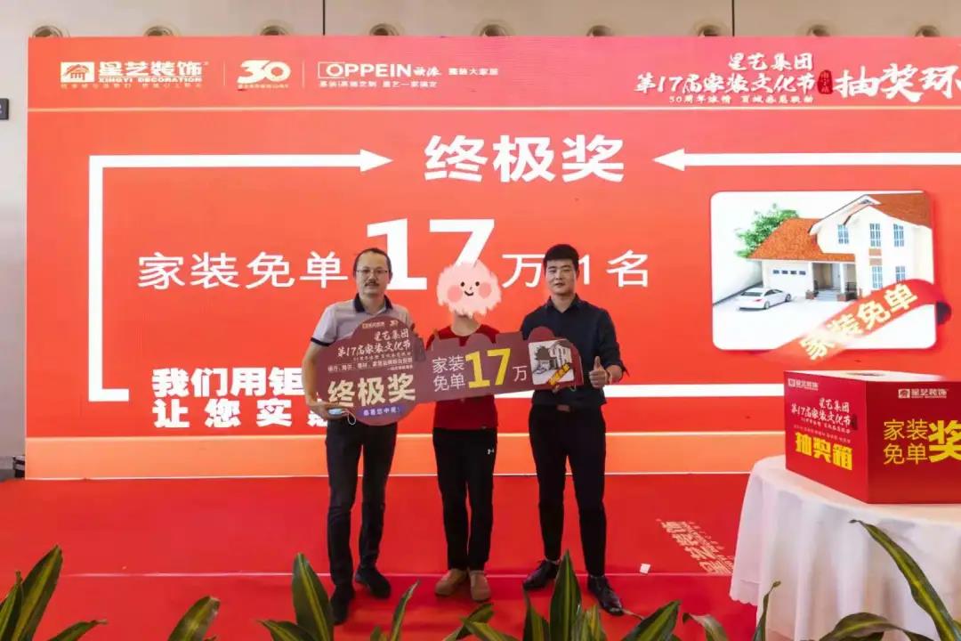 6月6日,隨著“17萬免單大獎”的塵埃落定,星藝裝飾第十七屆裝飾文化節(jié)(南寧站)在會展中心圓滿落下帷幕,在廣大客戶和四十多家一線品牌聯(lián)盟建材商家、中行、建行、民生銀行以及全體星藝家人的努力下,本次活動成功取得了608單的佳績,成績斐然,收獲滿滿。再次見證品牌力量、彰顯文化魅力!