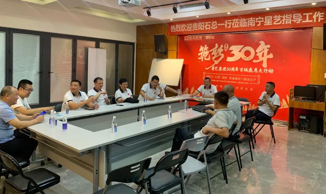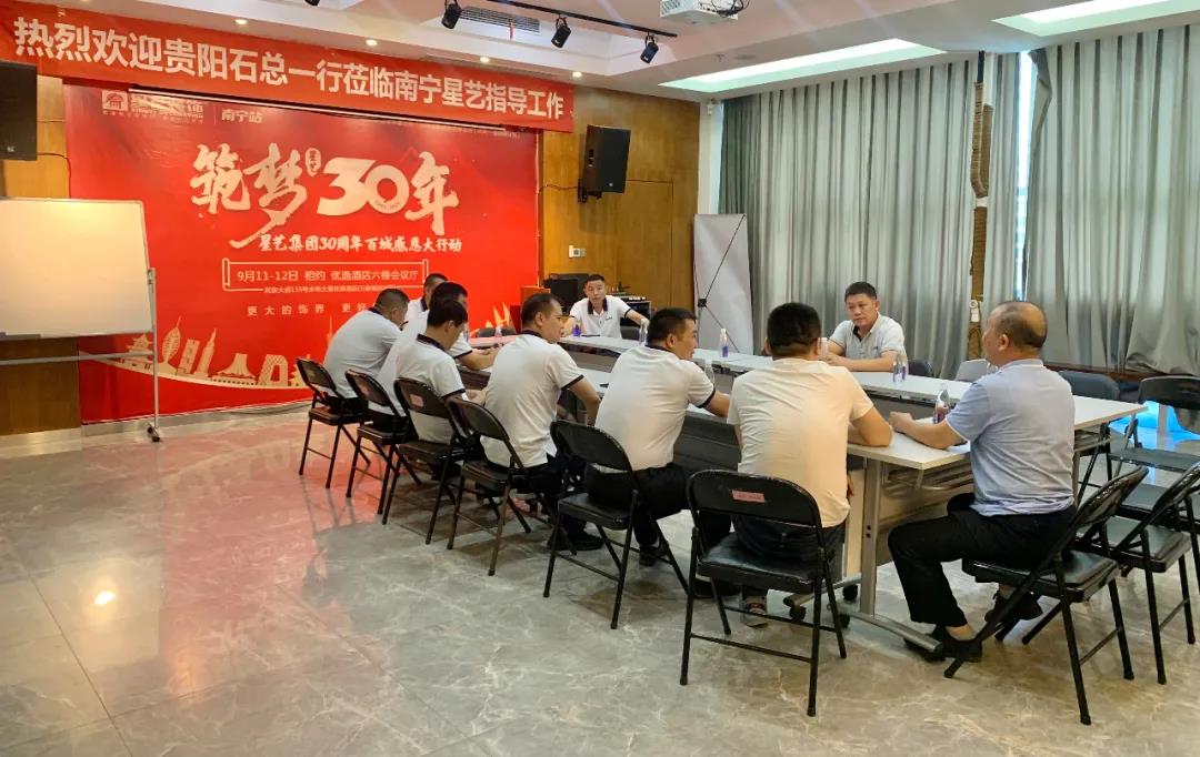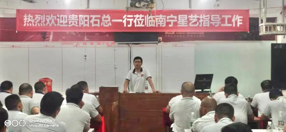 2021年8月29日,星藝貴陽公司石學軍、星藝凱里公司寧歸君、星藝畢節(jié)公司寧擁名等經(jīng)理一行人蒞臨星藝南寧交流指導工作,在星藝裝飾南寧公司總經(jīng)理周平生、工程總監(jiān)柯善林、黃江水及質(zhì)檢總監(jiān)余光生等領導的陪同下,貴陽&南寧兩地的兄弟公司就南寧工程管理進行了交流與探討。