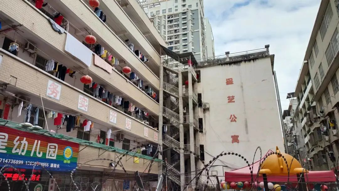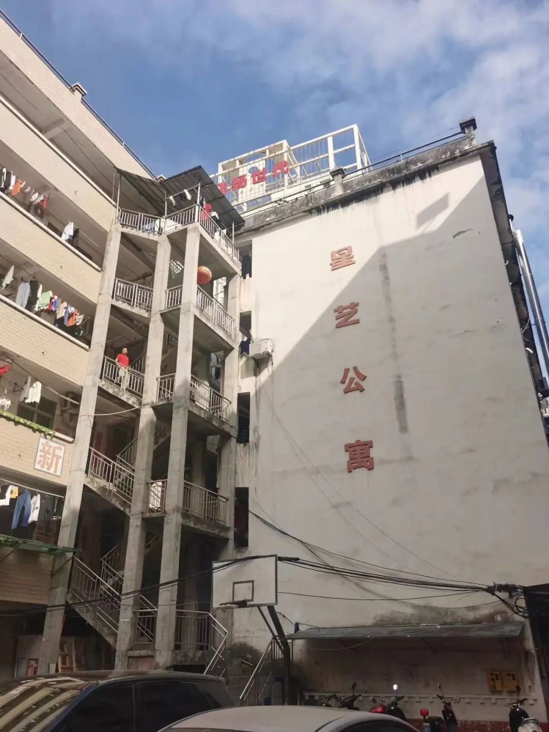 循童聲前往,見(jiàn)遠(yuǎn)處一棟樓的外墻上有“星藝公寓”4字。一樓幼兒園里孩子們的歡聲笑語(yǔ)與之相伴?!爸弊中卫鲜讲教葸B接兩棟樓,公寓樓總體呈“U”形合抱狀。公寓樓共5層,一樓設(shè)倉(cāng)庫(kù)、食堂、工程部辦公室、材料部辦公室、財(cái)務(wù)辦公室、籃球場(chǎng)(現(xiàn)有一半被用作幼兒園)等,樓上則住人,居住者均為南寧星藝人及其家屬。