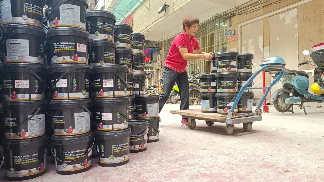 倉(cāng)庫(kù)主要儲(chǔ)存水電材料、乳膠漆、膩?zhàn)臃?、瓷磚膠、裝修輔料等。瓷磚等裝修主材則直接從廠家配送到工地,不經(jīng)過(guò)這里。在倉(cāng)庫(kù)門(mén)口,不時(shí)有車(chē)輛???,裝運(yùn)即將配送到工地的相關(guān)材料。倉(cāng)庫(kù)貨單柜上一格一格地標(biāo)注著項(xiàng)目經(jīng)理的名字,而格子里,則是他們所管工地的材料出貨單,密密麻麻。