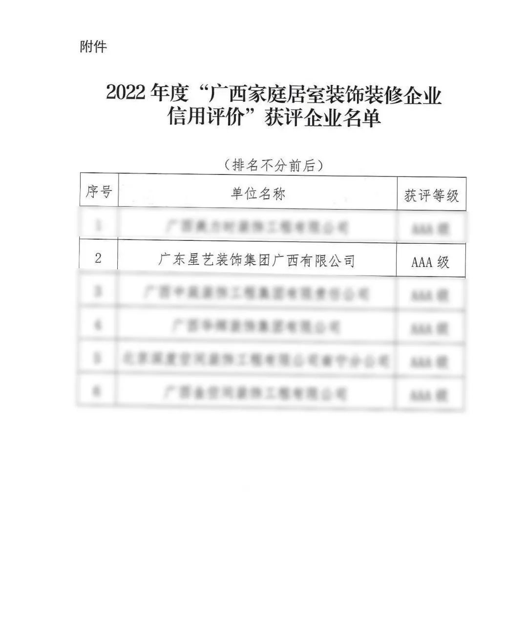 附件:2022年度“廣西家庭居室裝飾裝修企業(yè)信用評(píng)價(jià)”獲評(píng)企業(yè)名單