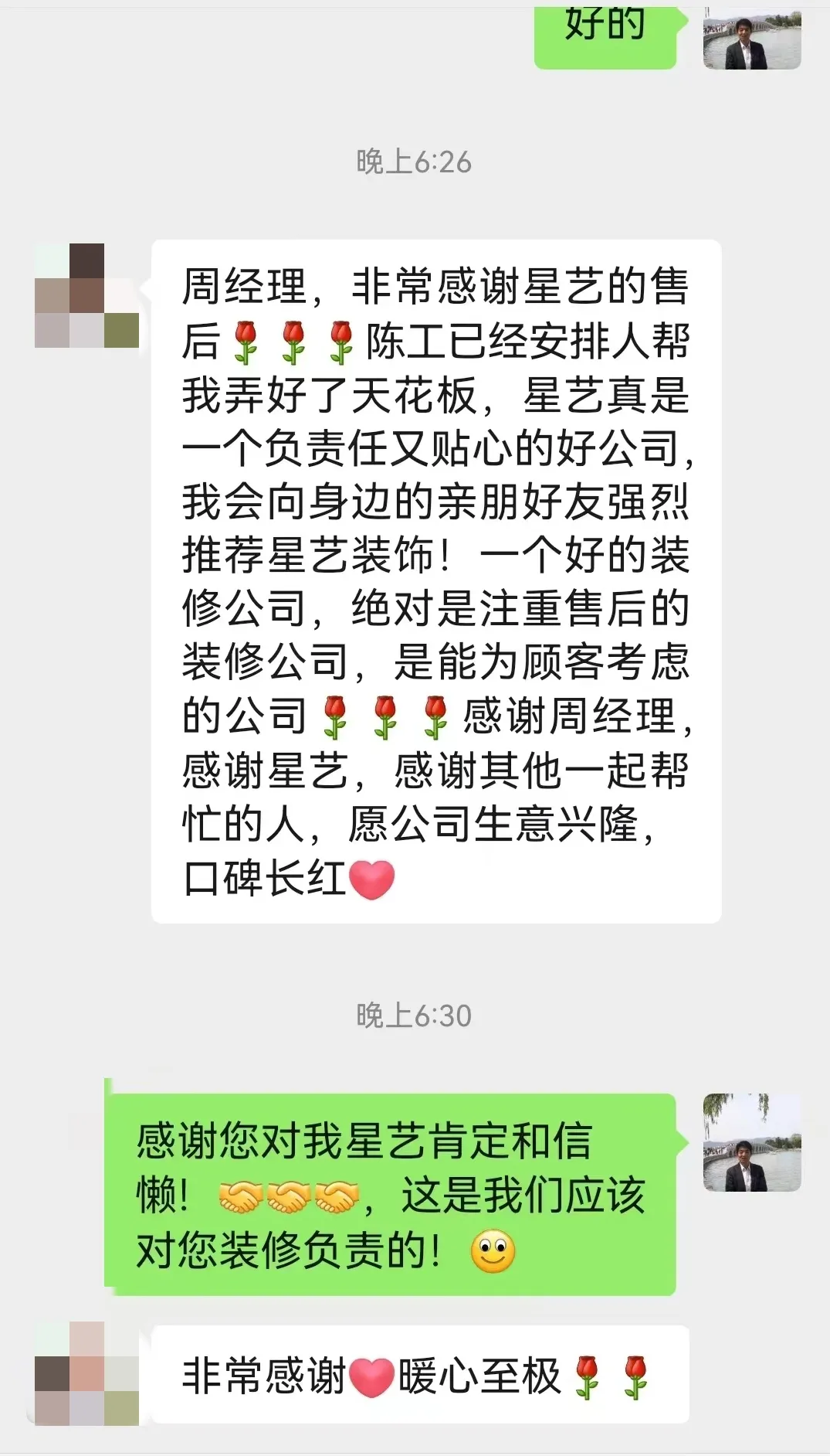 還有位入住業(yè)主在工程部檢修、解決問題后,力贊星藝裝飾是一個(gè)“負(fù)責(zé)任又貼心”、“注重售后的裝修公司”。