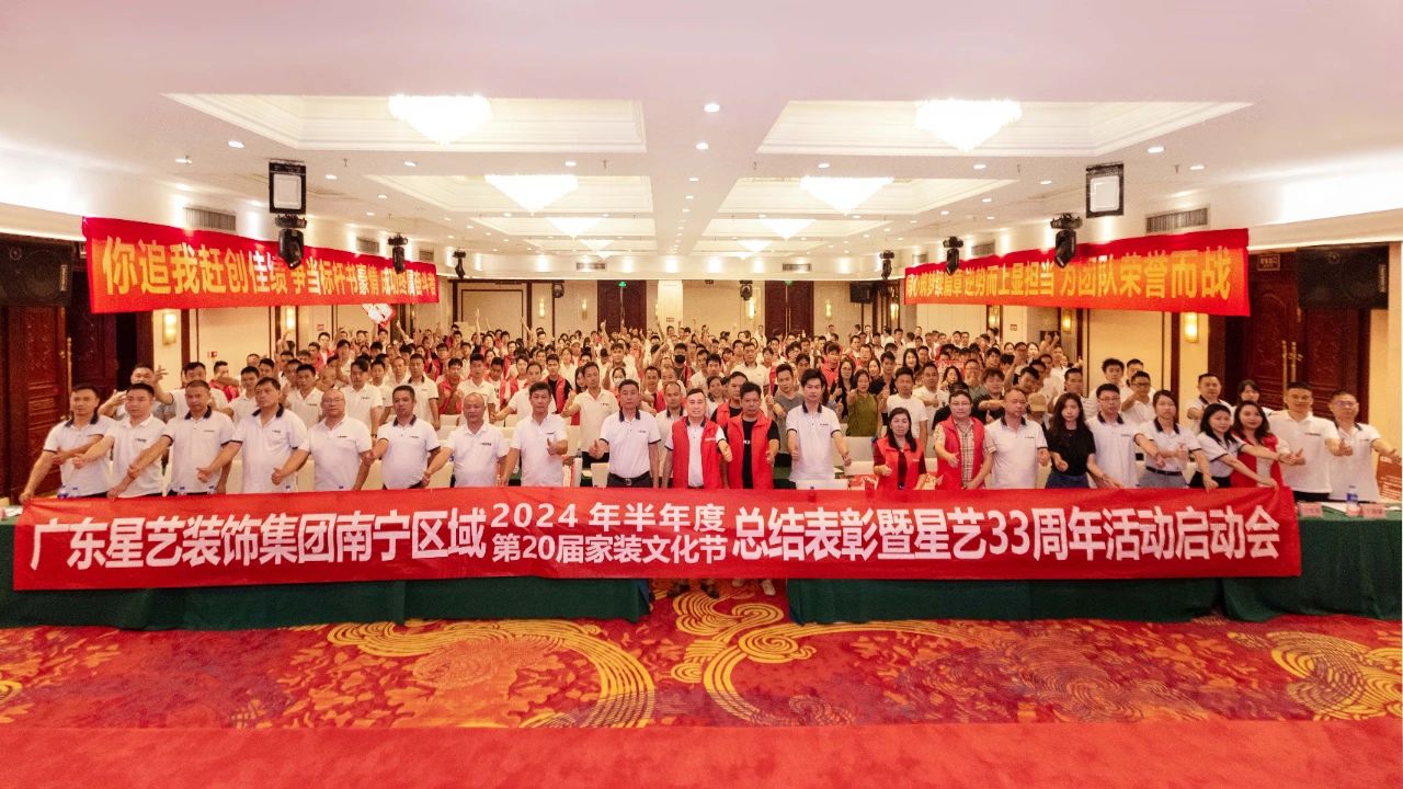 在此過去與未來交替的重要時(shí)刻,星藝“第20屆家裝文化節(jié)(南寧站)暨上半年總結(jié)表彰大會(huì)及集團(tuán)33周年慶活動(dòng)”啟動(dòng)會(huì)在南寧金旺角國(guó)際大酒店隆重舉行。星藝南寧區(qū)域總經(jīng)理周平生、星藝南寧區(qū)域副總經(jīng)理胡四民以及各直營(yíng)門店經(jīng)理、工程部監(jiān)理、設(shè)計(jì)師、營(yíng)銷員三百余人齊聚一堂,通過總結(jié)回顧,表彰優(yōu)秀團(tuán)隊(duì)以及個(gè)人,樹立榜樣標(biāo)桿,提高品質(zhì)服務(wù),從而為客戶提供更好、更省心省力的家裝服務(wù)。