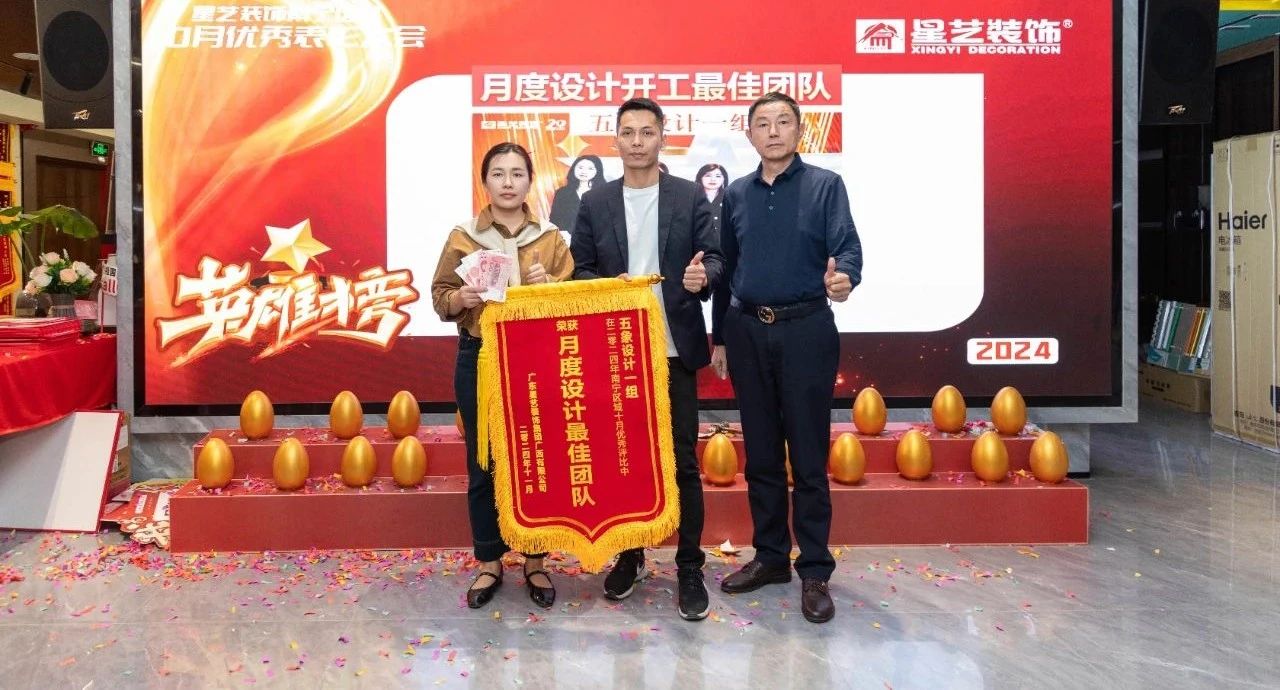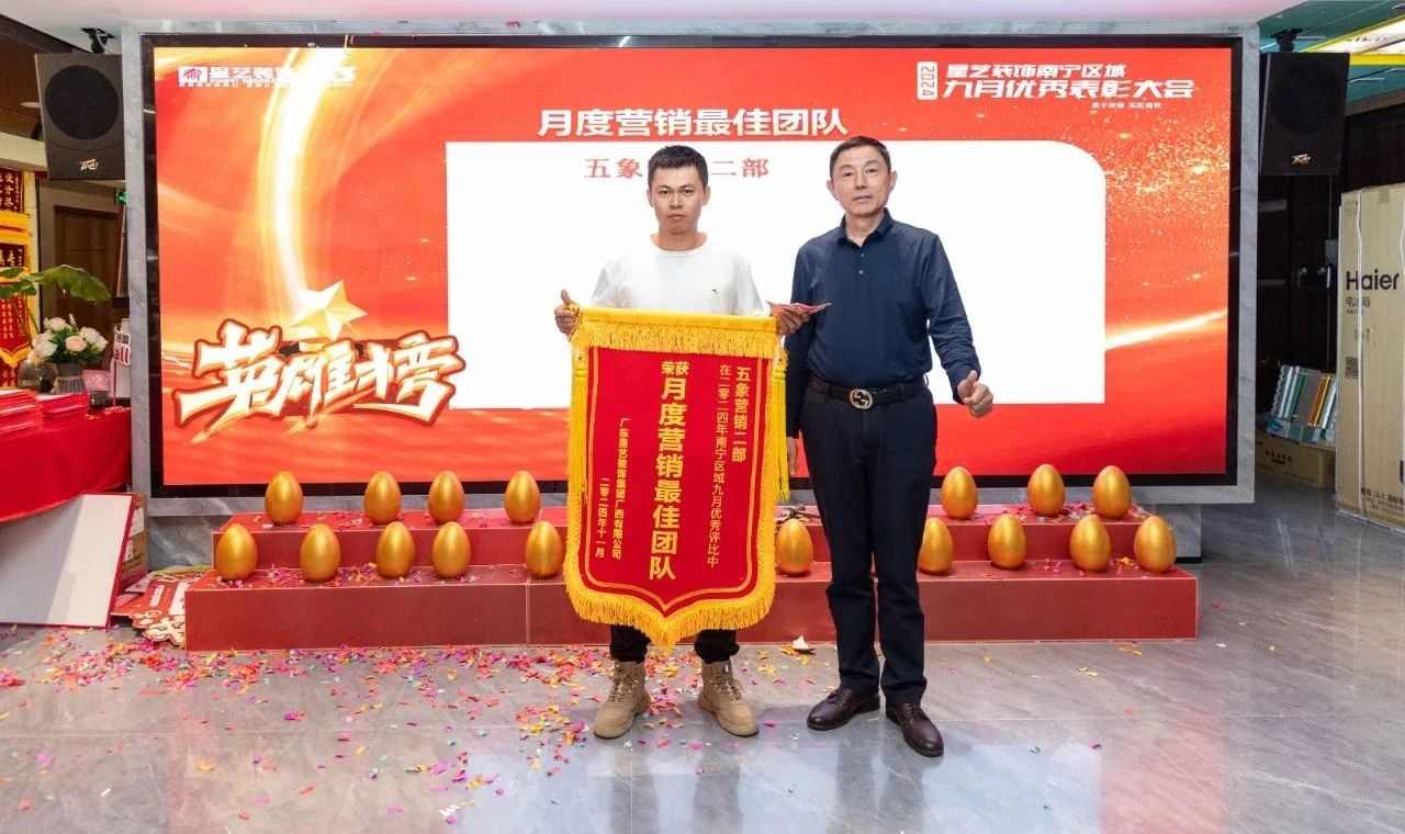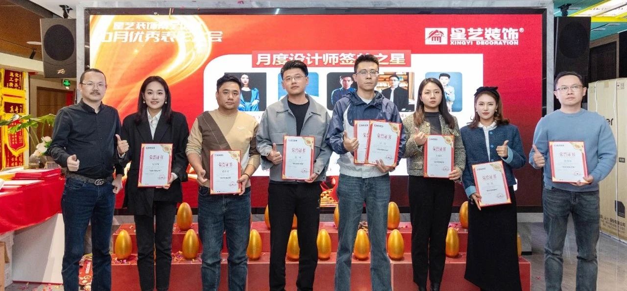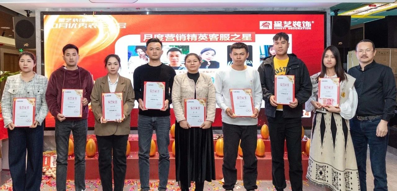 會議開始,星藝南寧區(qū)域總經(jīng)理周平生、星藝南寧區(qū)域設(shè)計總監(jiān)李明以及星藝南寧區(qū)域副總經(jīng)理胡四民率先為9月份、10月份表現(xiàn)優(yōu)異的星藝團隊及家人頒發(fā)月度獎勵以及證書,并號召現(xiàn)場星藝家人向優(yōu)秀看齊。