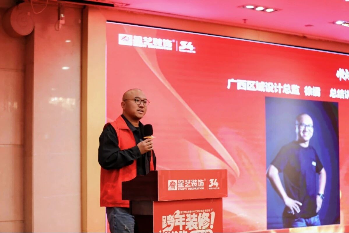 最后,星藝廣西設(shè)計總監(jiān)徐橘作會議總結(jié),徐總對此次啟動會培訓(xùn)效果表示肯定,同時鼓勵星藝各個部門的家人們與時俱進,創(chuàng)新思維,開拓新賽道,提高服務(wù)品質(zhì),用心服務(wù)每位業(yè)主。