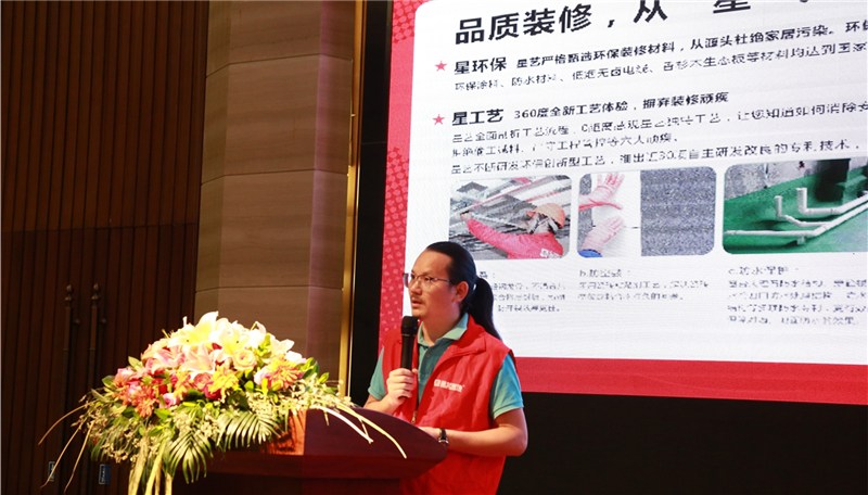 緊接著,星藝南寧區(qū)域總監(jiān)李明(以下簡稱李工)上臺講解“好飾連城5(南寧站)”活動精要;他以簡短的八月份總結(jié)做為致辭鋪墊,詳細的引出“好飾連城5(南寧站)”活動的優(yōu)惠亮點和微小改變,并借此寓意無論是業(yè)績還是星藝家人,在本次活動中亦能有個嶄新的突破。
