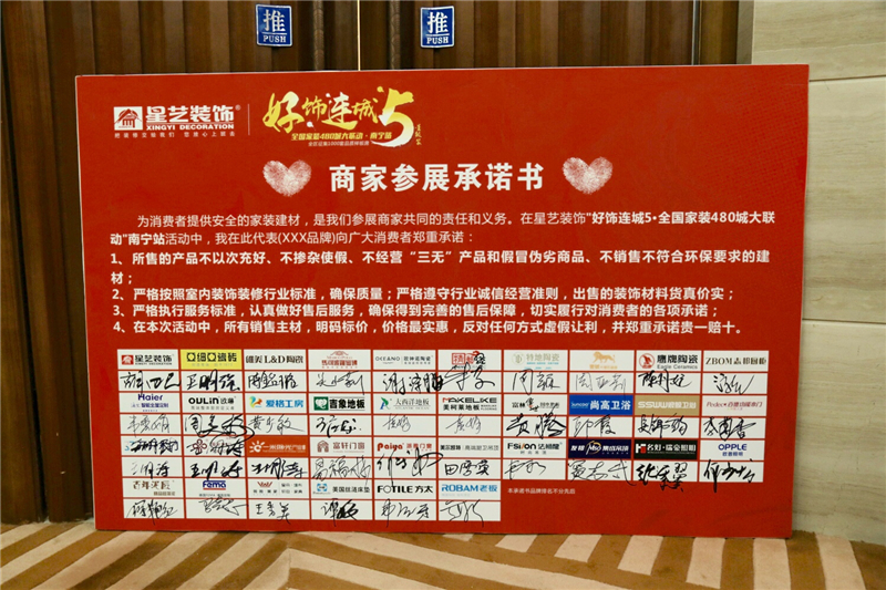 隨后本次參與活動的四十余名聯(lián)盟建材商家代表也上臺承諾宣誓,在本次活動中所參展的產(chǎn)品必然明碼標(biāo)價,質(zhì)量過硬,讓消費者享受到最實惠的品質(zhì)。